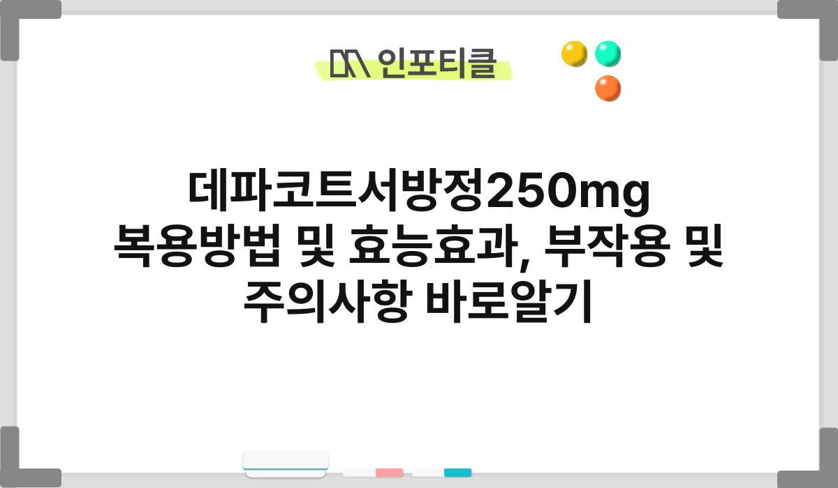 이번 글을 통해 데파코트서방정250mg의 복용 방법, 효능 효과, 부작용 및 주의사항에 대해 알아보았습니다.