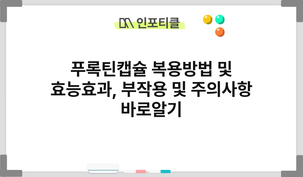 이 글에서는 푸록틴캡슐의 복용 방법, 효능과 효과, 부작용 및 주의사항에 대해 자세히 알아보겠습니다.