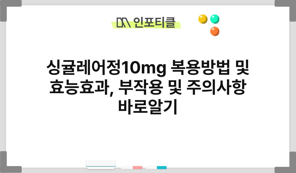 안녕하세요! 오늘은 싱귤레어정 10mg에 대한 정보로 가득한 시간을 가져보려고 해요. 이 약을 복용해본 적이 있나요? 혹은 복용 방법이나 효능, 부작용이 궁금하셨던 분들을 위해 준비했습니다. 함께 이 약의 다양한 면모를 살펴보며, 올바른 사용법과 주의사항도 알아볼까요? 여러분의 건강에 도움이 되기를 바라며, 시작해볼게요!