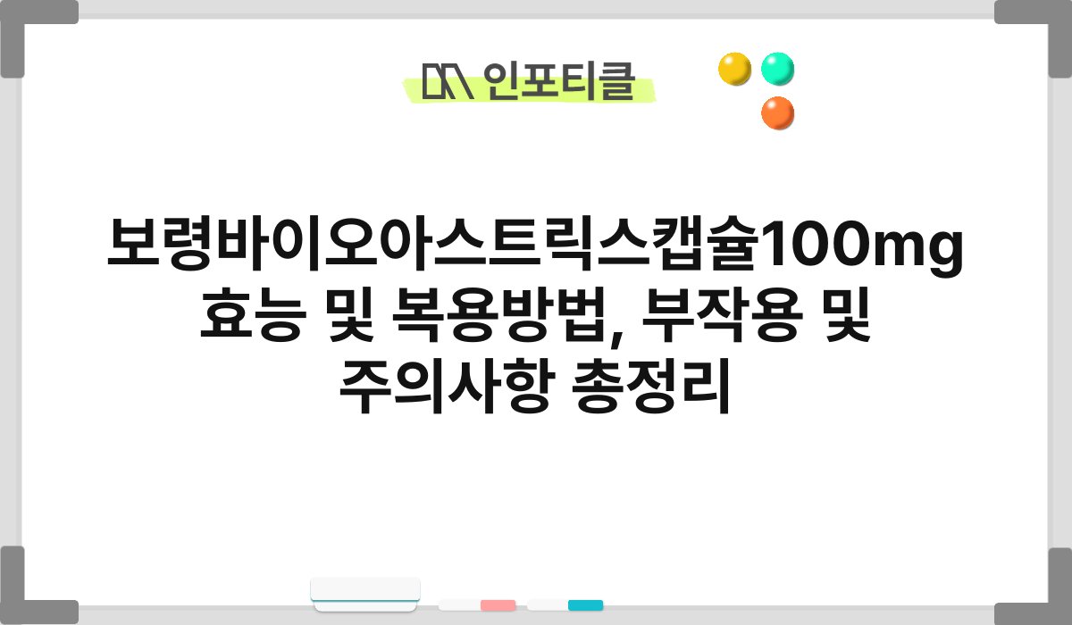 보령바이오아스트릭스캡슐 100mg, 들어보셨나요? 이 제품은 여러 효능으로 주목받고 있는데요. 많은 사람들이 관심을 가지고 있는 만큼, 사용법과 부작용에 대해서도 궁금증이 많습니다. 이번 글에서는 보령바이오아스트릭스캡슐의 효능, 복용방법, 부작용 및 주의사항을 총정리해 드릴게요. 함께 알아보면서 이 제품이 어떤 도움이 될 수 있을지 살펴보겠습니다!