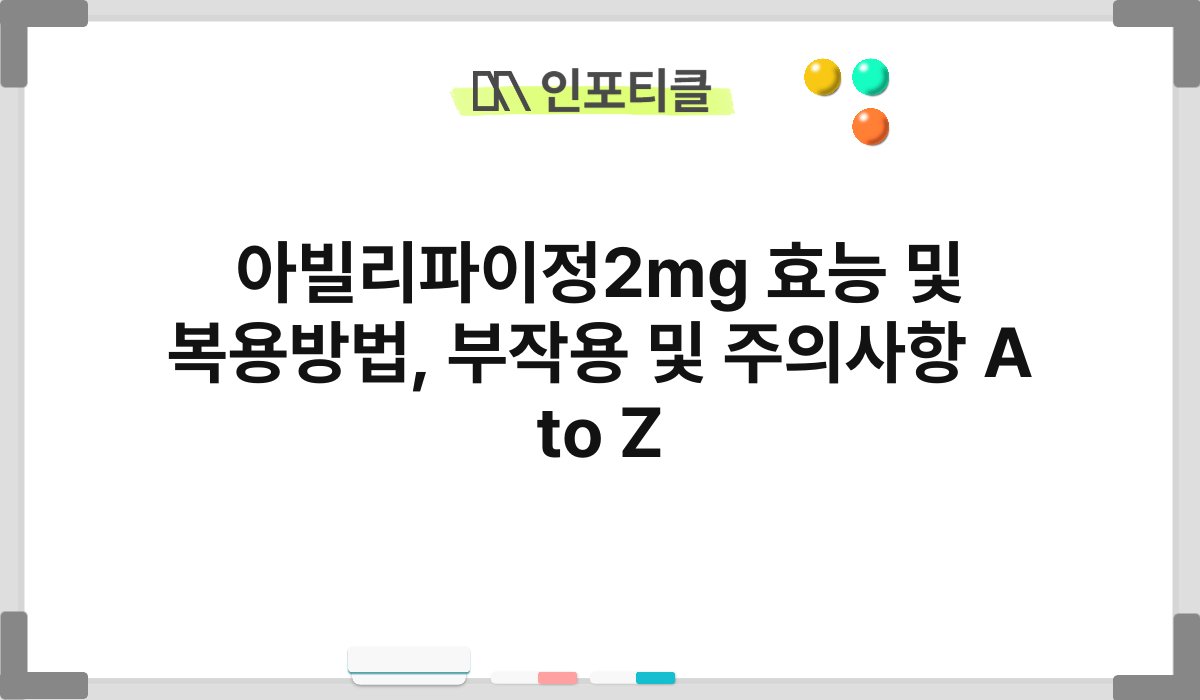 아빌리파이정 2mg에 대해 들어보셨나요? 이 약물은 주로 정신과에서 사용되며, 다양한 증상을 완화하는 데 도움을 주는 효능이 있습니다. 하지만 복용 방법이나 부작용에 대한 정보는 알고 계신가요? 이 글에서는 아빌리파이정 2mg의 효능, 복용 방법, 부작용 및 주의사항을 A to Z로 정리해드릴게요. 함께 알아보면 좋겠죠?