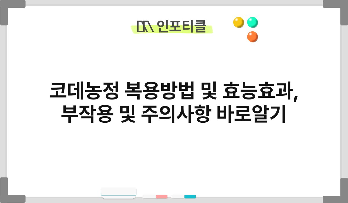 코데농정, 들어보셨나요? 요즘 많은 사람들이 이 약물의 효능과 복용 방법에 대해 궁금해하고 있습니다. 코데농정은 다양한 질병 치료에 도움을 줄 수 있는 약물입니다. 하지만, 복용 방법과 부작용에 대한 정보는 꼭 알고 있어야 하죠. 오늘은 코데농정의 효능효과, 복용 방법, 부작용 및 주의사항에 대해 자세히 알아보겠습니다.