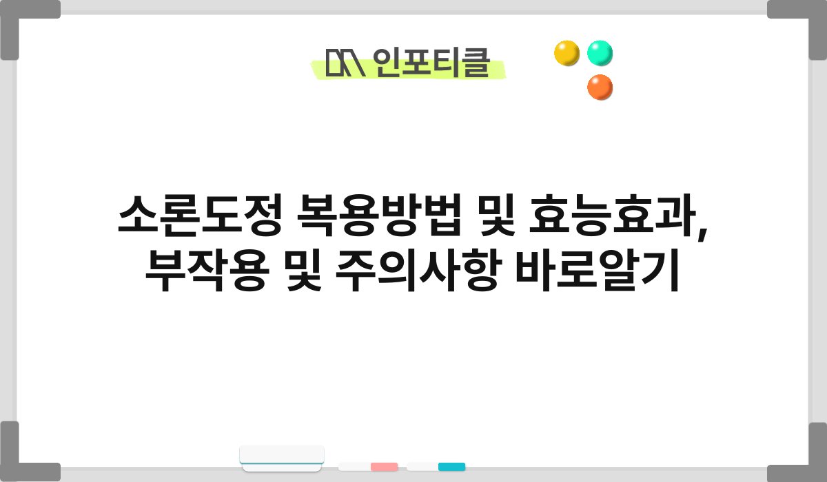 복용 중에는 정기적으로 의사와 상담하는 것이 중요합니다. 상태에 따라 용량 조절이 필요할 수 있기 때문이죠. 또한, 부작용이 발생할 경우 즉시 의사에게 알려야 합니다. 이러한 주의사항을 지키면 보다 안전하게 소론도정을 사용할 수 있습니다. 궁금한 점이 있으면 언제든지 물어보세요!