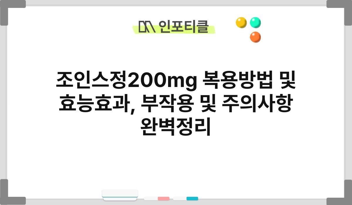 조인스정 200mg에 대해 궁금하신가요? 이 약물은 다양한 효능과 효과로 많은 사람들에게 알려져 있습니다. 하지만 복용 방법과 부작용에 대한 정보도 중요하죠. 오늘은 조인스정의 복용 방법, 효능, 부작용, 주의사항을 완벽하게 정리해보겠습니다. 이 글을 통해 조인스정에 대한 모든 궁금증을 해결해볼까요?