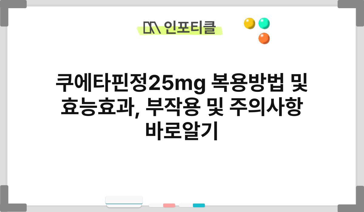쿠에타핀정 25mg에 대해 들어보셨나요? 이 약물은 정신과적 증상 치료에 많이 사용되며, 많은 분들이 그 효능과 복용 방법에 대해 궁금해하실 것 같아요. 오늘은 쿠에타핀정의 복용 방법, 효능 및 효과, 부작용과 주의사항까지 자세히 알아보는 시간을 가져보겠습니다. 이 글을 읽고 나면 쿠에타핀정에 대한 궁금증이 한층 해소될 거예요. 그럼 시작해볼까요?