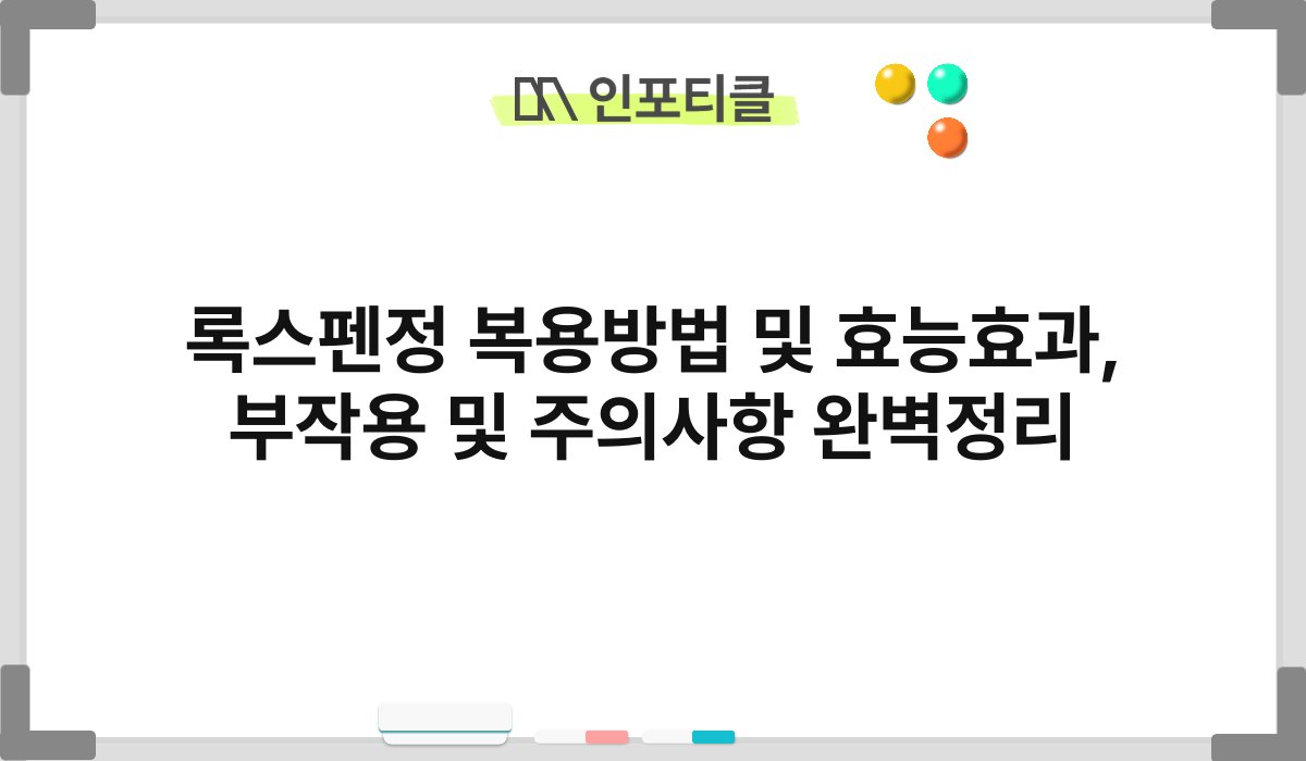 록스펜정, 들어보신 적 있으신가요? 요즘 많은 분들이 이 약에 대해 궁금해하고 있습니다. 그 이유는 바로 록스펜정이 다양한 효능과 효과를 지니고 있기 때문인데요. 하지만 복용방법과 부작용, 주의사항도 함께 알아야 안전하게 사용할 수 있습니다. 이번 글에서는 록스펜정의 모든 것을 완벽하게 정리해 보도록 하겠습니다.