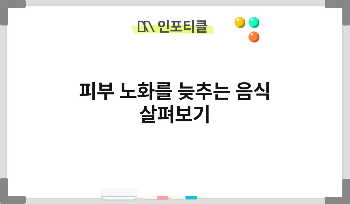 피부 노화를 늦추기 위해서는 건강한 식습관이 중요합니다. 항산화 성분, 비타민 C, 오메가-3 지방산, 수분이 많은 식품, 그리고 다양한 색상의 채소를 섭취하는 것이 좋은 방법입니다. 지금이라도 하나씩 바꿔보는 건 어떨까요? 건강한 피부를 위해 꾸준히 실천해보세요!