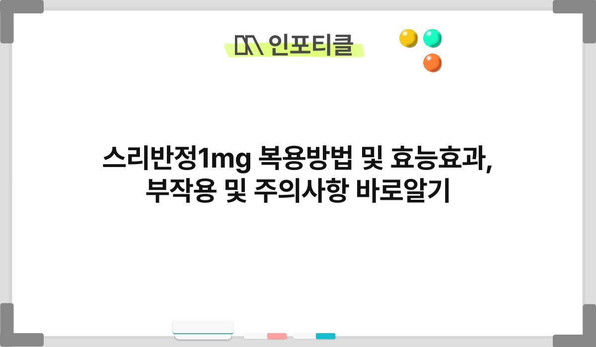 스리반정 1mg, 이 약에 대해 혹시 들어보셨나요? 많은 분들이 불안이나 긴장감을 완화하는 데 도움을 준다는 이야기를 많이 하죠. 하지만 복용 방법이나 효능, 부작용에 대한 정보는 제대로 알고 계신가요? 오늘은 스리반정 1mg의 복용 방법, 효능 및 효과, 그리고 주의사항에 대해 자세히 알아보겠습니다. 이 글을 통해 스리반정에 대한 올바른 정보를 얻어가시길 바랍니다!
