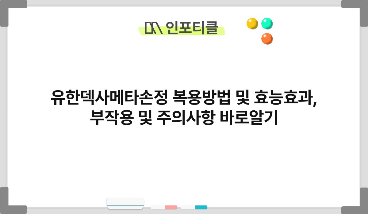 유한덱사메타손정, 들어보셨나요? 이 약물은 다양한 염증성 질환에 효과적인 스테로이드입니다. 하지만 안전하게 복용하기 위해서는 올바른 복용 방법과 부작용에 대한 이해가 필요합니다. 이 글에서는 유한덱사메타손정의 효능, 복용 방법, 부작용, 주의사항 등을 자세히 알아보겠습니다. 올바른 정보로 건강을 지키는 데 도움이 되길 바랍니다.