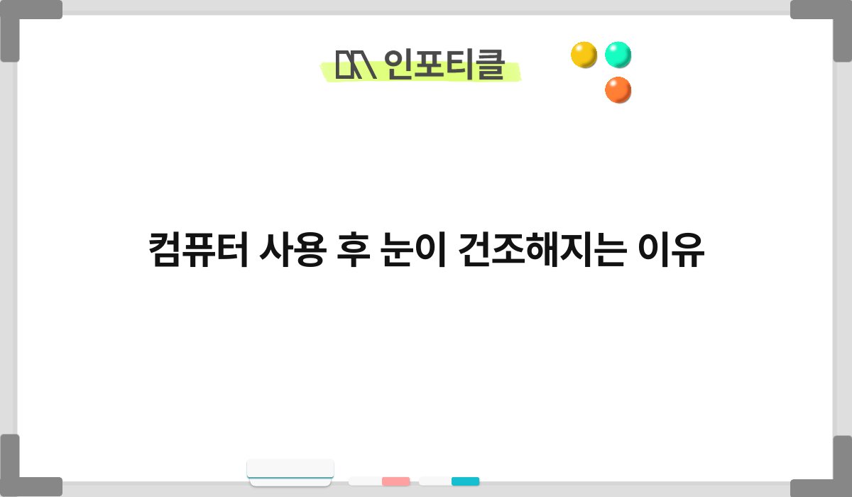 눈 깜빡임은 눈을 보호하는 중요한 자연 현상입니다. 하지만 컴퓨터를 사용할 때는 집중하느라 깜빡임이 줄어듭니다. 이로 인해 눈 표면의 수분이 빠르게 증발하게 되죠.