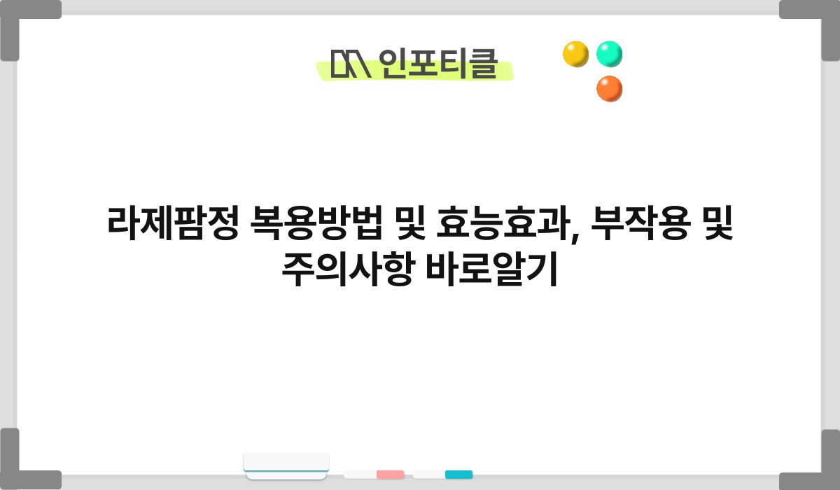 라제팜정, 들어보셨나요? 불안과 긴장 완화에 도움을 주는 이 약물은 많은 이들에게 필요한 존재입니다. 하지만 복용 방법과 효능, 부작용 등에 대해 정확히 알고 계신가요? 이번 글에서는 라제팜정의 복용방법 및 효능효과, 부작용 및 주의사항을 자세히 알아보겠습니다. 이 글을 통해 라제팜정에 대한 궁금증을 해소해 보세요!
