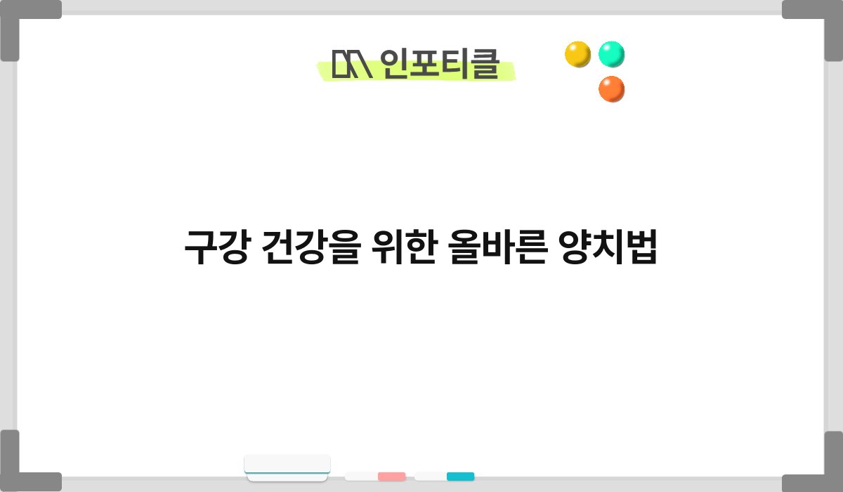 구강 건강, 한 번씩 신경 써야겠다고 생각하지만, 막상 양치할 땐 대충 하게 되기 마련이죠? 올바른 양치법을 익히면 치아와 잇몸을 건강하게 지킬 수 있습니다. 오늘은 구강 건강을 위한 올바른 양치법에 대해 자세히 알아보겠습니다. 이를 통해 여러분의 구강 건강을 한층 더 향상시킬 수 있는 방법을 전해드릴게요. 끝까지 읽어보시면 분명 큰 도움이 될 것입니다.