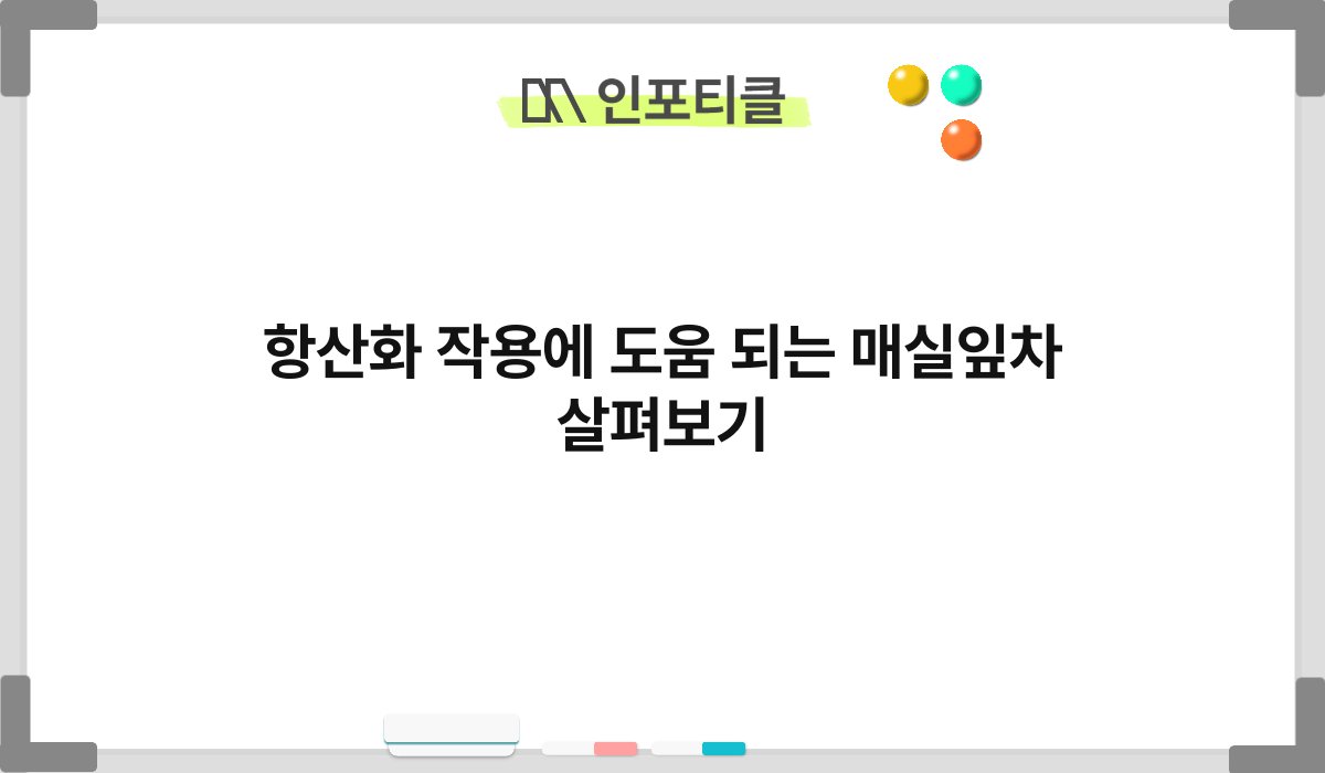 매실잎차는 항산화 성분이 풍부하여 체내 유해 물질 제거에 도움을 줘요
